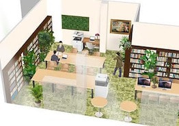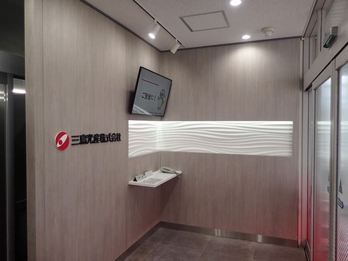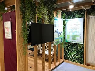 大鉢の植物を使った事務所内の空間演出のプランニングです。フェイクグリーンやバーティカルグリーン、アーティフィシャルグリーンを使ったサイン計画や施工など承ります。