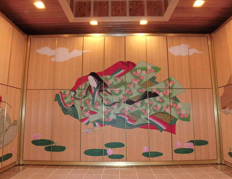 小竹町役場のトイレを楽しくデザインさせていただきました。スカイダイバーたちに取り囲まれます。また、トイレの給水タンクもパラシュートのデザインに。