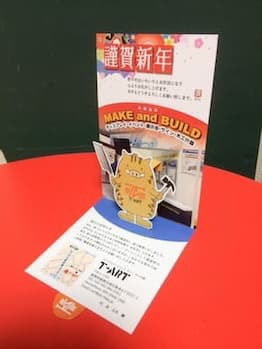 イノシシ年の年賀状です。独立したばかりの製作会社さんだったので、それを知らせるためにポップアップで強調しました。