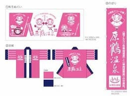 原鶴温泉のキャラクターを発案し、手ぬぐいや法被、フライヤーなどを作成しました。