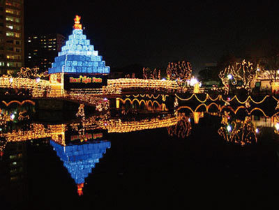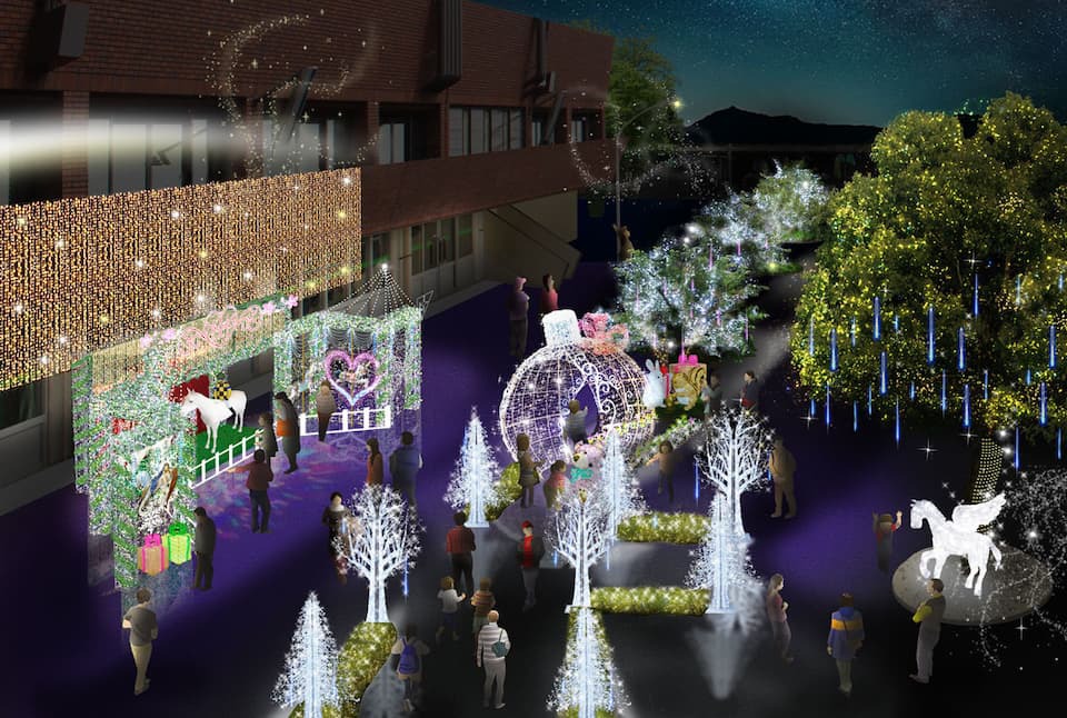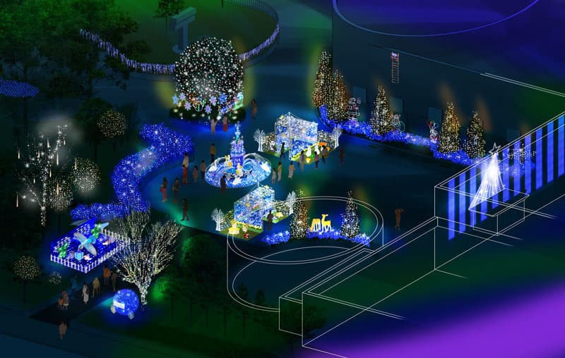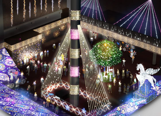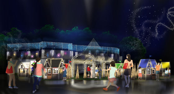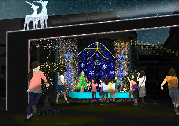 イベント性を高めたイルミネーションデザインです。コンセプトは、若い人や家族連れの誘引を図ったファンタジックな空間づくりです。