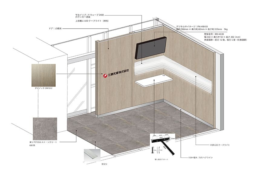 オフィス内の企業PRや説明のできるコーナーづくり