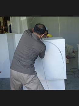 成形します。この場合は硬質ウレタンですが、発泡スチロールを削って成形するケースも少なくありません。