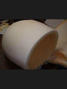 7.ベースが硬質ウレタンの場合はボア生地を張り込んで仕上げて行きます。