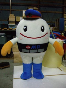最後に検針をして完成です。 ロゴマークや帽子の製作など細かい作業もこなしてやって出来上がります。 着ぐるみ製作は実に手間のかかる仕事です。