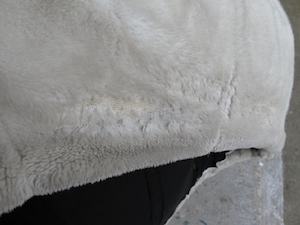 一部だけボア生地の毛足が擦れていて、汚れたように見えるのはかなり致命的です。その一部だけボア生地を張り替えるのは困難です。もしできたとしても、その部分だけが異なった感じの色になります。
