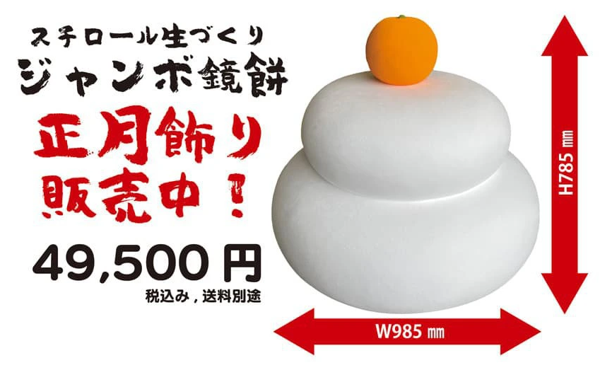 お正月のディスプレイに使えるスチロール製鏡餅です。