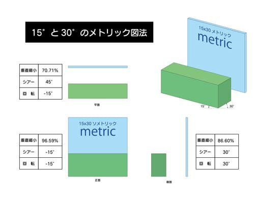 | ダイメトリック | 平面 | 96.592% | 15° | −15° |